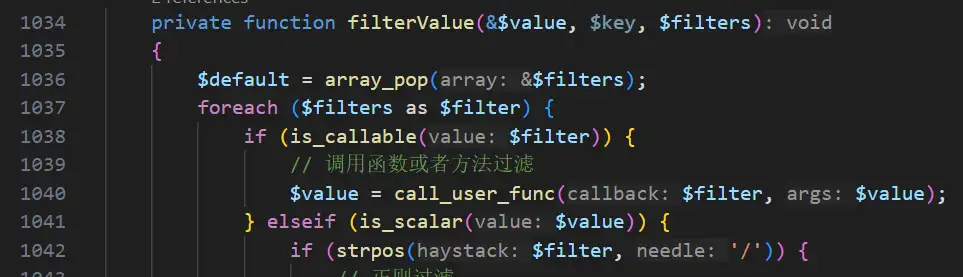 filterValue方法,只要我们控制了value和filter的值,call_user_func($filter, $value)就可以实现任意方法的调用