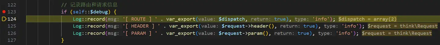 然后会根据debug开关来选择是否执行Request::instance()->param()