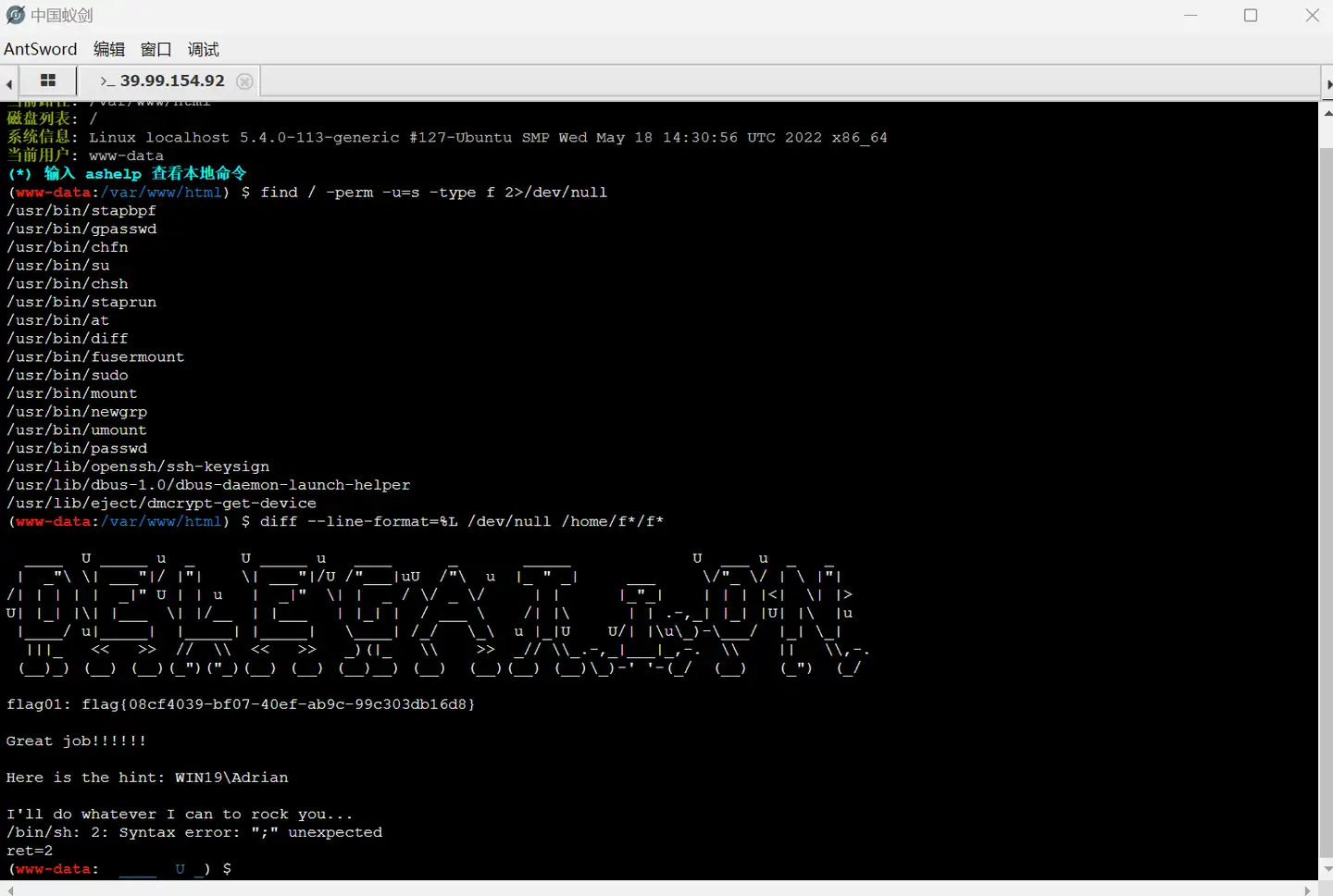 将两个文件通过蚁剑上传到最开始连接的var/www/html文件夹下,rdp远程连接的机子访问http://172.22.4.36/1.exe以及shift.bat,将其下载到桌面