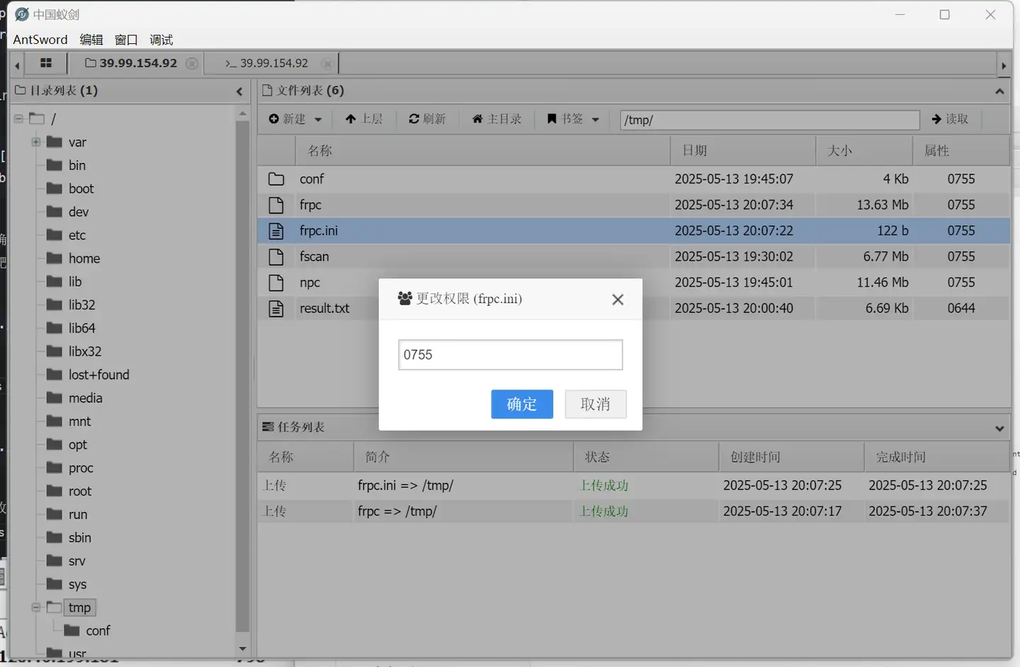在tmp目录下上传fscan(其他目录没权限不能上传)